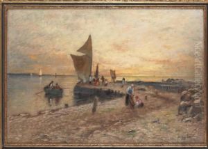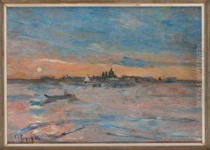 View From Venice. Signed W V Gegerfelt, A Mon Ami Tibott? Oil On Plate. 23 X 32 Cm