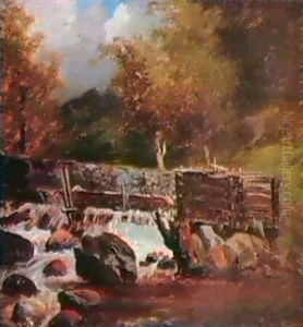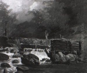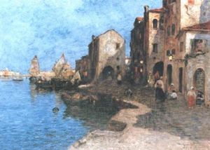 Italienskt Landskap Med Byggnad Och Figurer-i Fonden Vatten