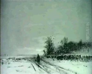 Soligt Vinterlandskap Med Pramar Pa Kanal