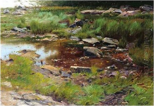Gergerfelt , River Landscape, Signed, Oil On Canvas, 55 X 79 Cm.; 21 1/2 X 31 In