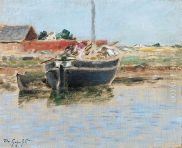Skuta Vid Strand. Stampelsignerad W V Gegerfelt