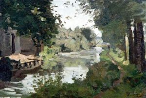 The Hague School Painter Paul Joseph Constantin Gabril At Work In Aboat