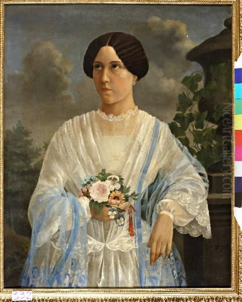 Portret Van Een Dame Met Bloemen In De Hand