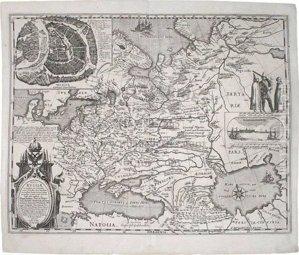 Blaeu's Publication Of The Map By Hessel Gerritsz. There Is An Inset Plan Of Moscow And A View Of Archangel; Also, An Engraving Of Three Soldiers (one With Musket), Vignettes Of Sailing Ships, And A Cartouched With The Double-headed Eagle Shield. Dutch Te