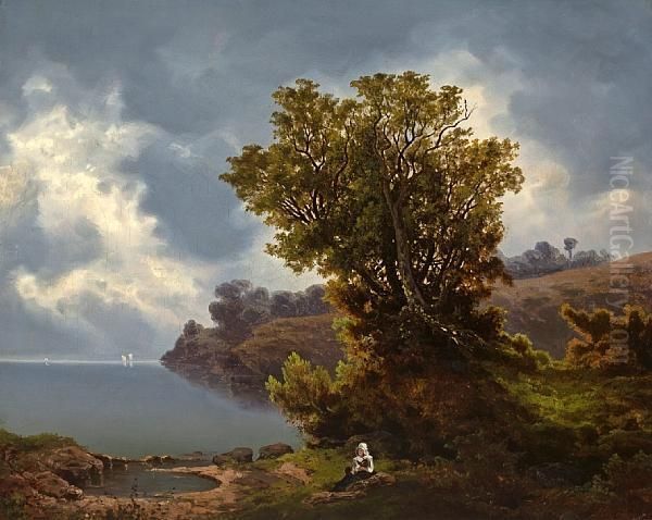 Two Figures Seated Under A Tree, A Stormapproaching Beyond