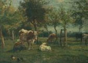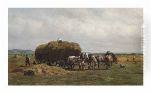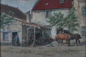 Horses And Figures On A Beach With Fishing Boats Beyond