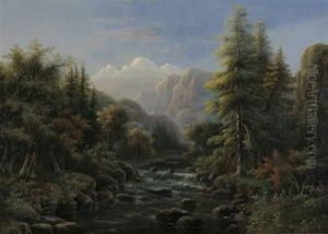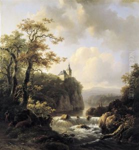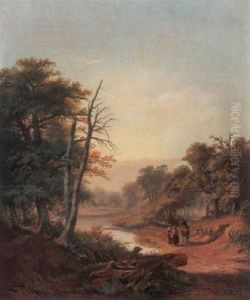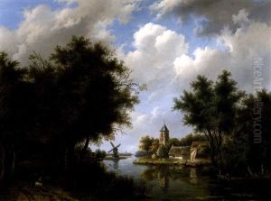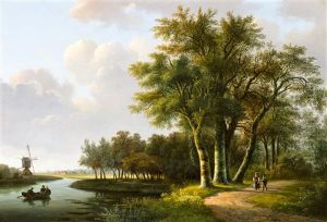 A Wooded River Landscape With Figures By A Watermill