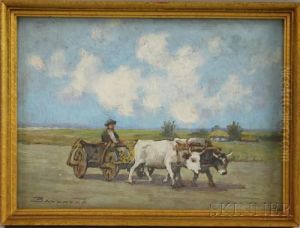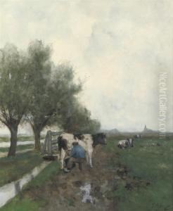 Landliche Strassenpartie Mit Bauerin Oil Painting by Willem Ferdinand Abraham Isaac (Vaarzon) Morel