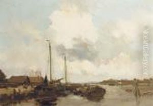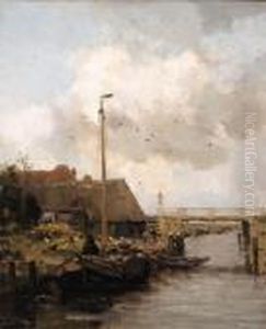 A Peasant Woman By A Day Labourer's Cabin Drawing Water From Aditch