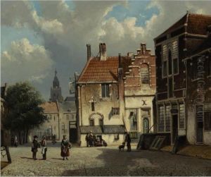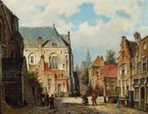 Figures In The Sunlit Streets Of A Dutch Town