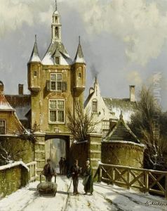 A Capriccio View Of A Sunlit Town In Winter With Numerous Figures