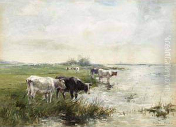 Watering Cows In A Polder Landscape