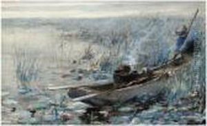 Polderlandschap Met Roeiboot In De Rietkraag