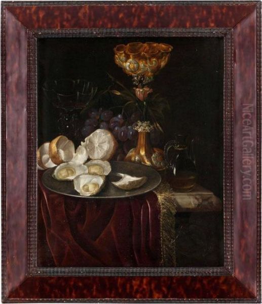Stilleben Med Nautiluspokal, Ostron Och Druvor.