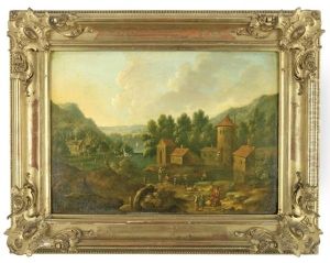 Italienische Fantasielandschaft Mit Bogenbrucke Uber Einem Fluss, Hoherstehendem Campanile Und Figurenstaffage