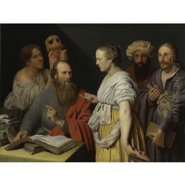 A Scholar In His Study With Figures With Masks, An Allegory (?)