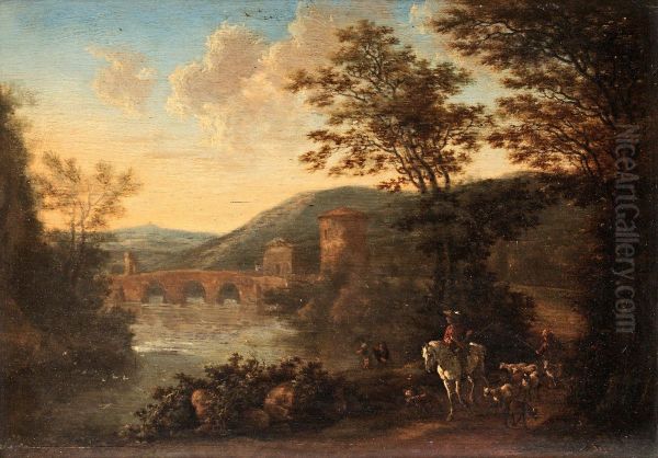 Italiserande Landskap Med Resande Sallskap Och Boskap
