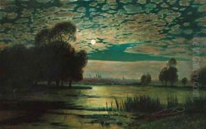 River Landscape By Moonlight