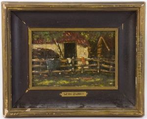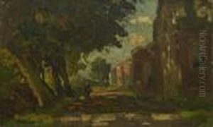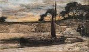 A Wooded Landsape With A Peasant In A Praam By A Draw-bridge