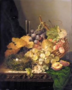 Still Life With A Basket Of Flowers, A Bird's Nest And A Songbird,all Arranged On A Marble Plinth, The City Of Rotterdam Beyond, Withthe Tower Of The Laurenskerk; Still Life With A Basket Of Fruit On A Ledge Before A Landscape,including A Pineapple, Bunch