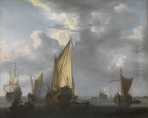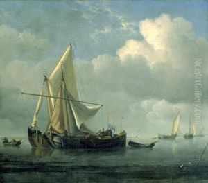 Two Small Vessels and a Dutch Man-of-War in a Breeze