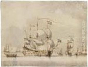 A Dutch Ship Getting Under Way Firing A Salute - 'The Cannon Shot'