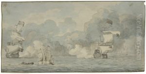 An English Sixth-rate Ship Firing A Salute As A Ship's Barge Leaves Her, Other Shipping Beyond