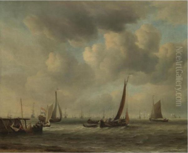 A Kaag And Other Dutch Coastal Vessels Putting Out From A Jetty,the Dutch Fleet Beyond