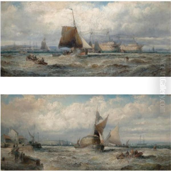 A Fresh Breeze, Old Hulks On The Hamoaze, Devonport; Wind Against Tide, Barges At The Mouth Of The Thames