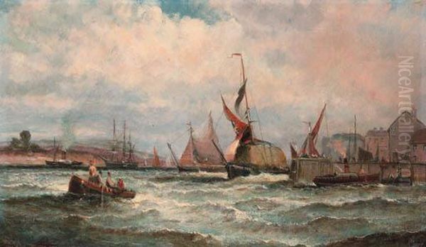 North Shields Fishing Boats On The Beach; And Hay Barges On Anincoming Tide