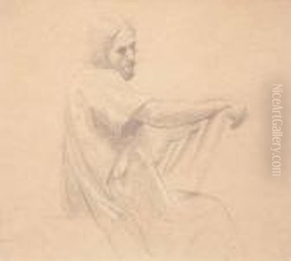 Etude Pour Sainte Perpetue, Homme Assis Dessinant