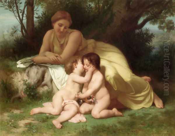 Bring the timeless beauty of William-Adolphe Bouguereau's Jeune femme contemplant deux enfants qui s'embrassent (Young woman contemplating two embracing children) into your home with a handmade oil painting reproduction. Carefully recreated on canvas by skilled artists using traditional techniques, this piece captures the delicate brushwork, subtle light, and vibrant color of the original masterpiece. With museum-level quality and rich texture, it brings elegance and artistic depth to any space. Enjoy free shipping and make this masterpiece a part of your personal collection.