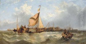 A Brig, A Dutch Fishing Boat And A Steam Ship, Off The Harbour Entrance