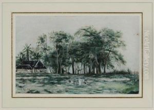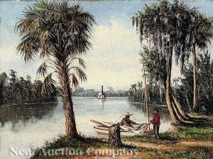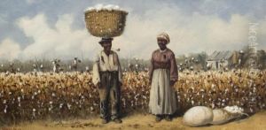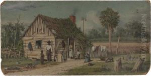 Baumwollplantage Mit Hutte Und Figurenstaffage.