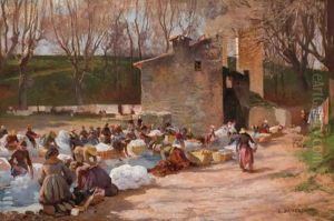 Bring the timeless beauty of William Alfred Gibson's Washerwomen into your home with a handmade oil painting reproduction. Carefully recreated on canvas by skilled artists using traditional techniques, this piece captures the delicate brushwork, subtle light, and vibrant color of the original masterpiece. With museum-level quality and rich texture, it brings elegance and artistic depth to any space. Enjoy free shipping and make this masterpiece a part of your personal collection.