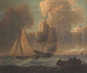 Dutch Barges Running Inshore On A Breezy Day As An English Man-o'war Passes By