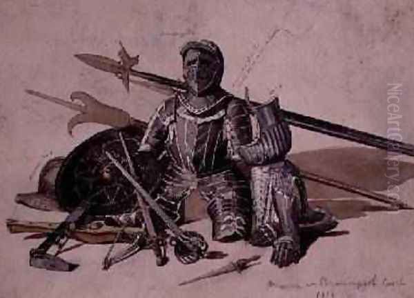 Study of armour and weapons at Brancepeth Castle Durham 1818