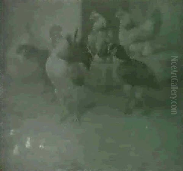 Chickens By A Step Oil Painting by William Baptiste Baird