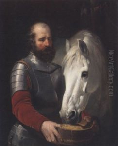Portrait Of A Huntsman With His Horse And Hound