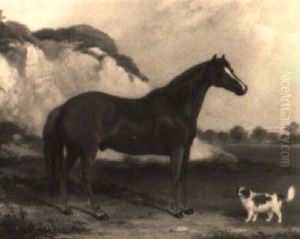 A Chestnut Horse And Spaniel In A Landscape