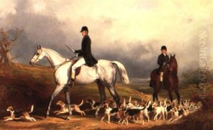 William Long, Huntsman To The Beaufort, On His Grey Hunter "bertha" With Three Hounds