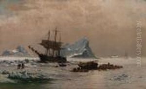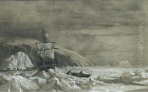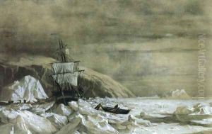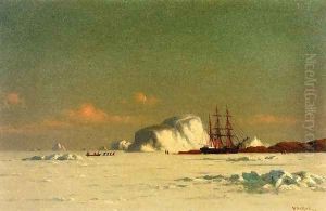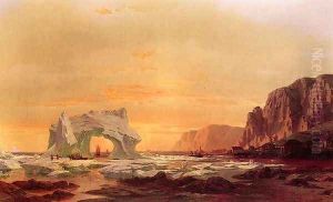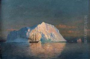 Labrador Mountain And Icebergs By Light Of The Midnight Sun