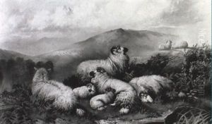 Sheep In A Winter Landscape, Initialled