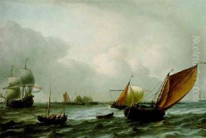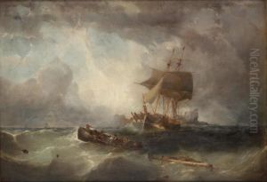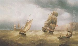 Shipping In A Swell Oil Painting by William Callcott Knell