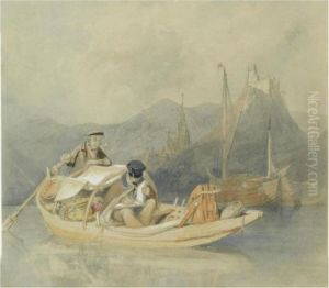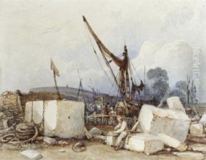 A Boat Moored With Figures In The Foreground, Fort Rouge, Calais