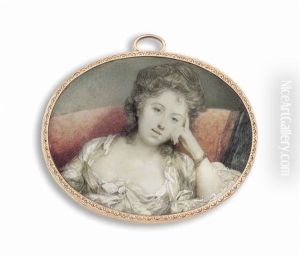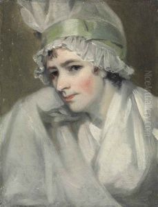 Portrait Of A Lady Attired In An Empire-style White Gown With Aubergine Sash, Seated Upon A Canape
