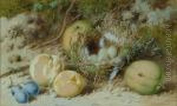 'bird's Nest With Eggs And Fruit Beneath A Mossy Bank'