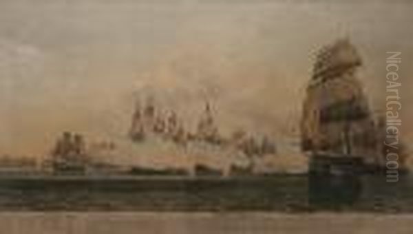 The Homeward Bound Fleet Of Indiamen From China Under The Command Of Captain Dance Engaging And Repulsing A Squadron Of French Men Of War Near The Straits Of Malacca Feb 15th 1804