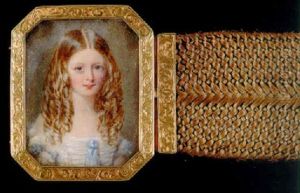 Archibald William, 8th Marquess Of Queensberry As A Child, Full-length, Seated On A Bank In Loose White Dress, With Blue Bows At Shoulders And Holding A Blue Ribbon In His Right Hand