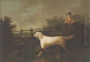 A Sportsman And Three Gun Dogs On A Moor